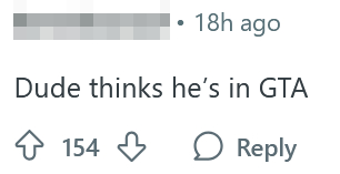 One commenter joked that the driver thought they were playing ‘Grand Theft Auto’.