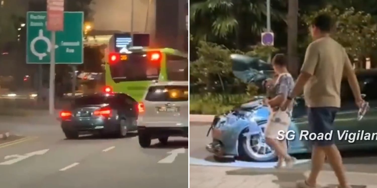 BMW crashes into bus while attempting to overtake outside Suntec City