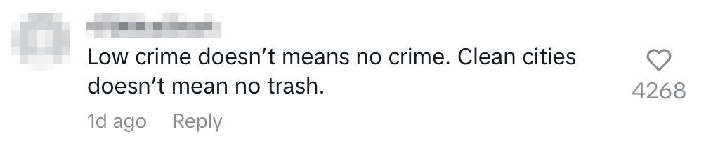 As one user aptly put it: “Low crime doesn’t mean no crime. Clean cities doesn’t mean no trash.”