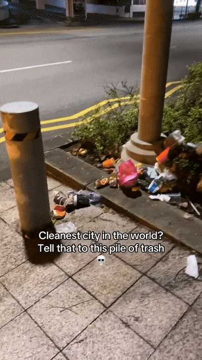 In the clip, she remarks, “People who say Singapore is the cleanest city on this planet — you guys haven’t seen this,” before panning the camera to reveal the mess.