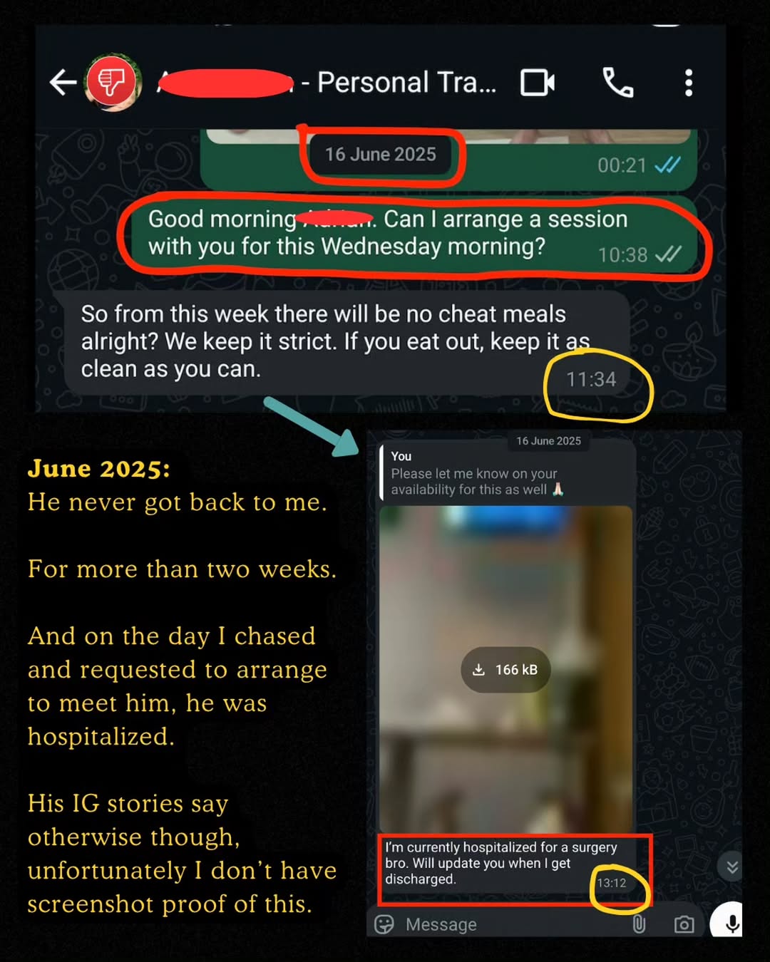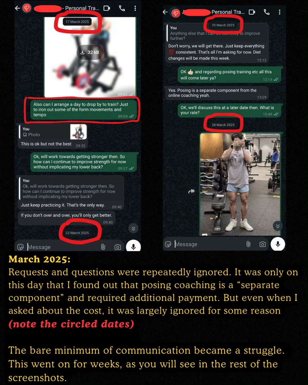 Bodybuilder hires personal trainer for his first competition, coach allegedly ghosts him and takes weeks to respond