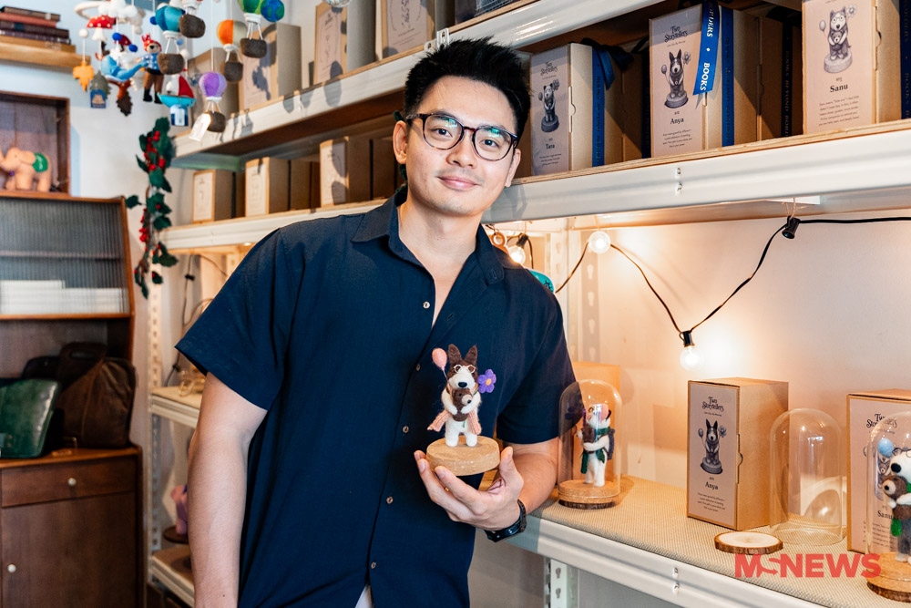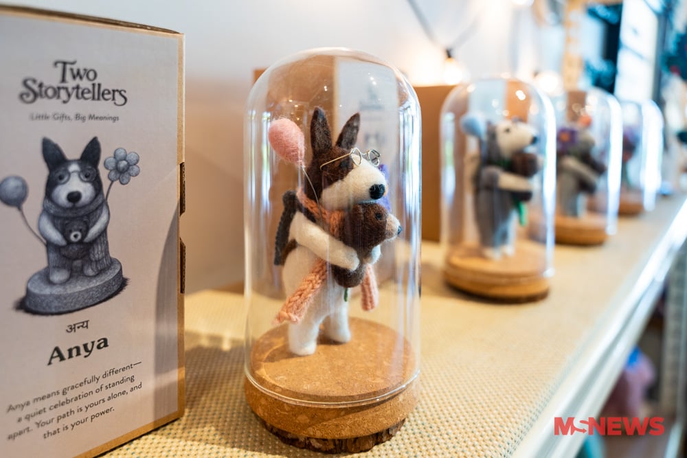 He showed off their creations, which included glass jars filled with charming wool toys, all expertly felted by hand.