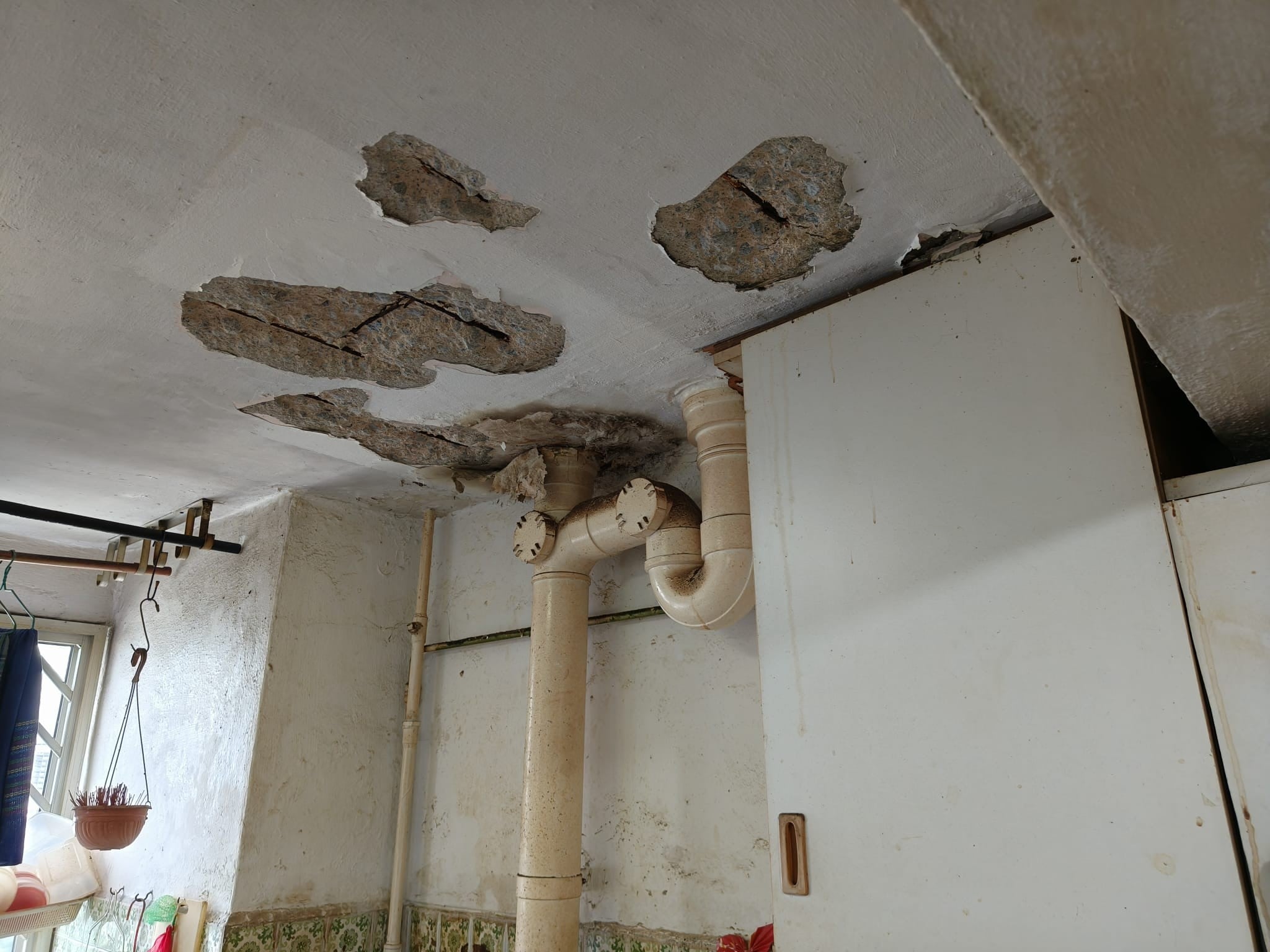 According to photos, his flat was not only cluttered but its ceiling was falling apart.