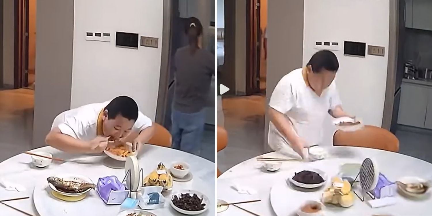 In a moment that left viewers both amused and exasperated, he frantically spins the turntable, scoops up a few more bites, and even attempts to leave with his bowl of rice and a dish in hand.