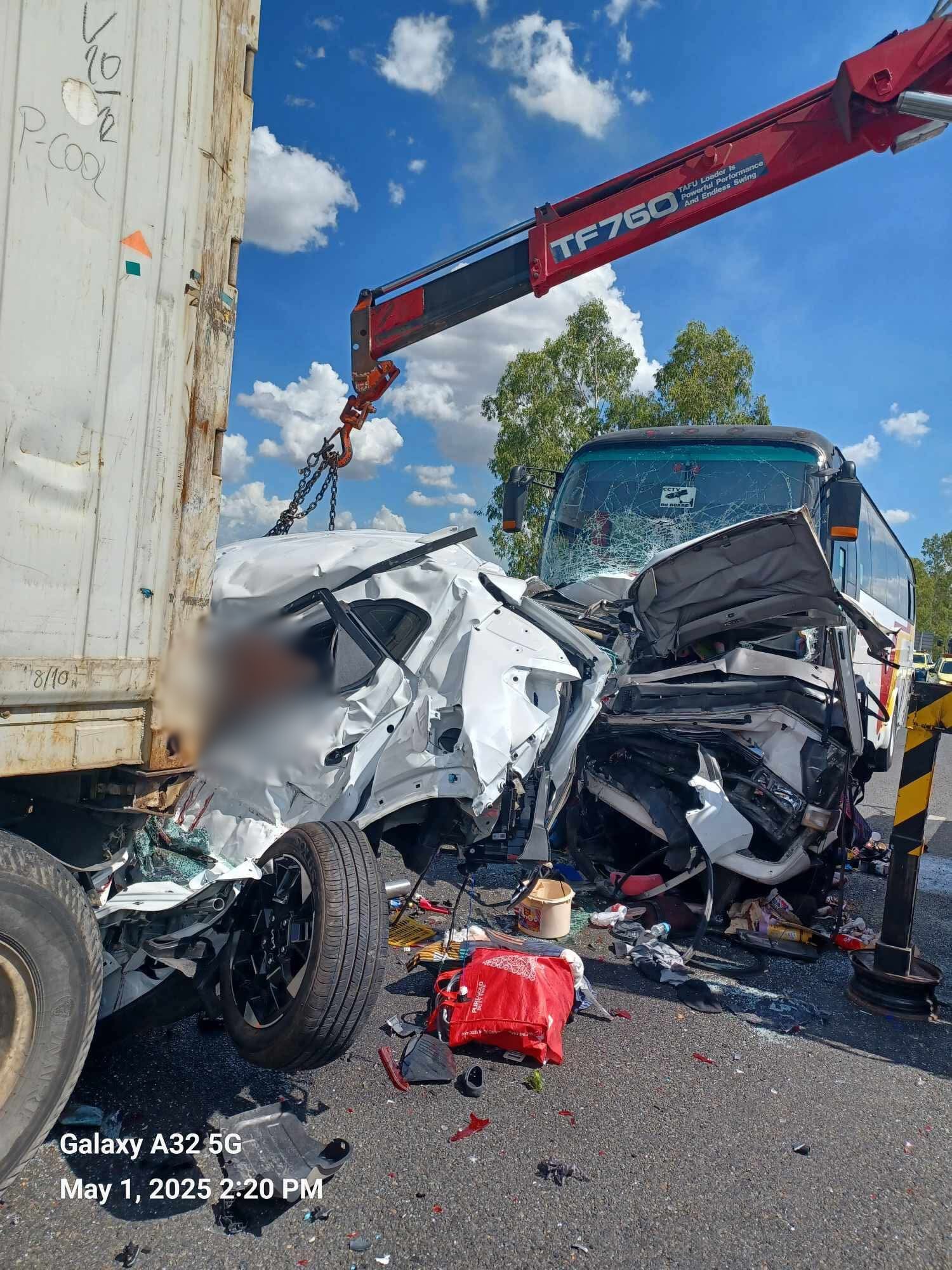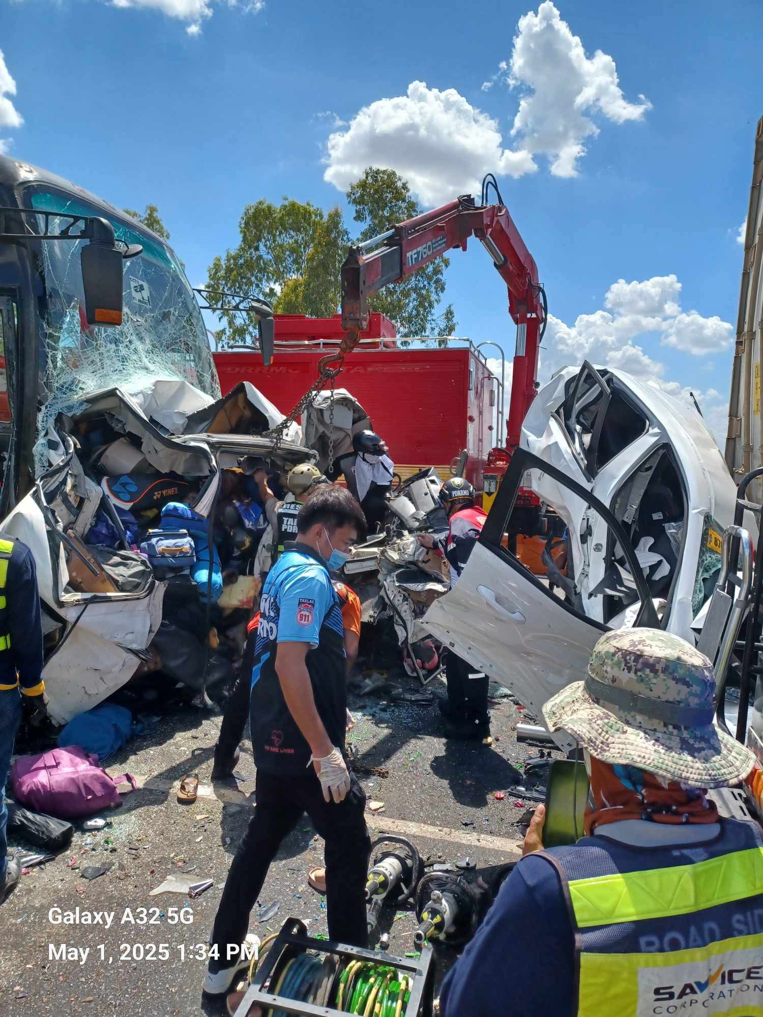 “The impact was so severe that the victims were totally crushed inside the two vehicles sandwiched [between the bus and the truck]”, Marvin Guiang, head of Tarlac Provincial Disaster Risk Reduction and Management Office, told GMA Network.