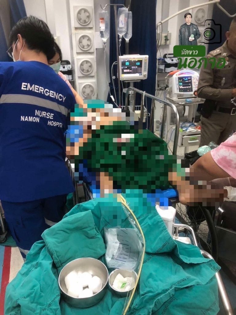 The boy was initially rushed to Namon Hospital but was later transferred to Kalasin Hospital due to the severity of his injuries.