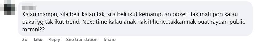 Translation: If you can afford it, then buy it. If not, buy according to what your pocket can manage. You won’t die from wearing something that’s not on trend. Next time, if your child wants an iPhone, are you going to make a public appeal like this?