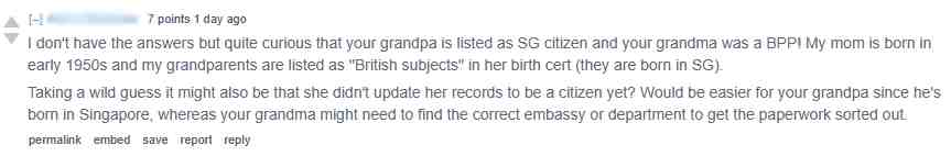 Another netizen shared that their own mother, born in the early 1950s, had parents listed as British subjects even though both were born in Singapore.