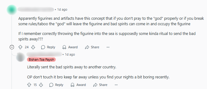 One user suggested that the proper way to handle such statues would be to bring them to a temple, where they can be respectfully dealt with.