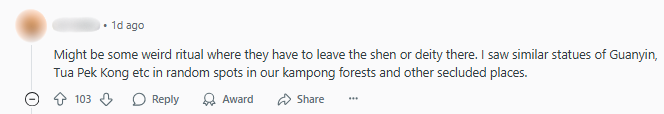While the incident may be a first for many, one Redditor shared that they had previously come across statues of deities in other parts of Singapore, including forests and secluded areas.