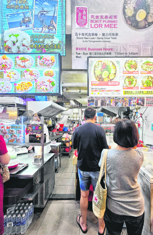 When reporters arrived, she was seen speaking to police officers while the male hawker cooked noodles in his stall.