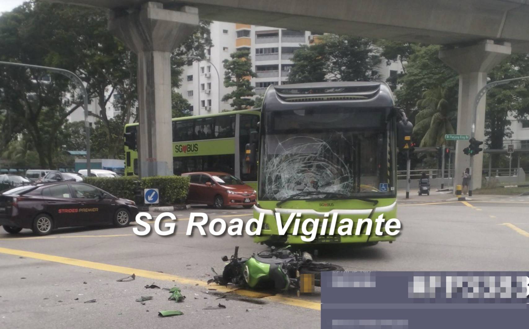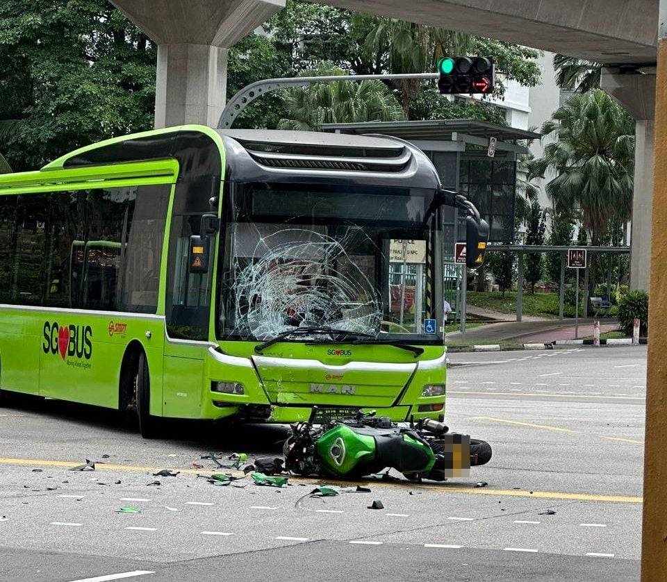 Motorcycle collides into bus at junction of Bukit Panjang & Jelebu Road junction on 15 Aug