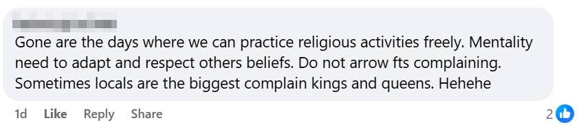 A netizen reminded others to be tolerant, noting that such activities only happen once a year.