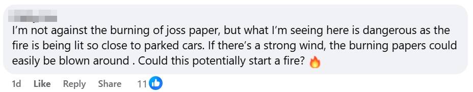 Another netizen felt that burning of joss paper should only be done in designated areas for safety reasons.