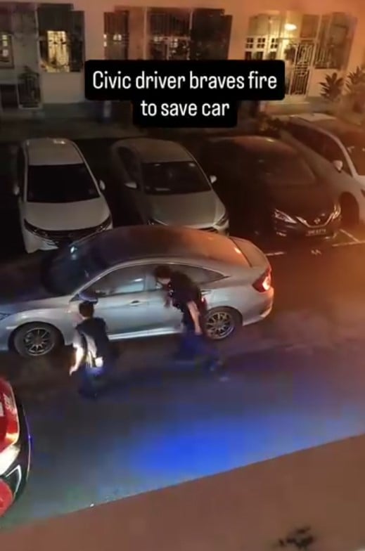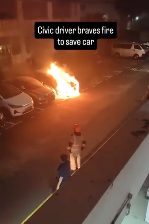 To illustrate the danger, Mr Teh shared another video showing firefighters putting out the fire after the Honda Civic had been driven away.