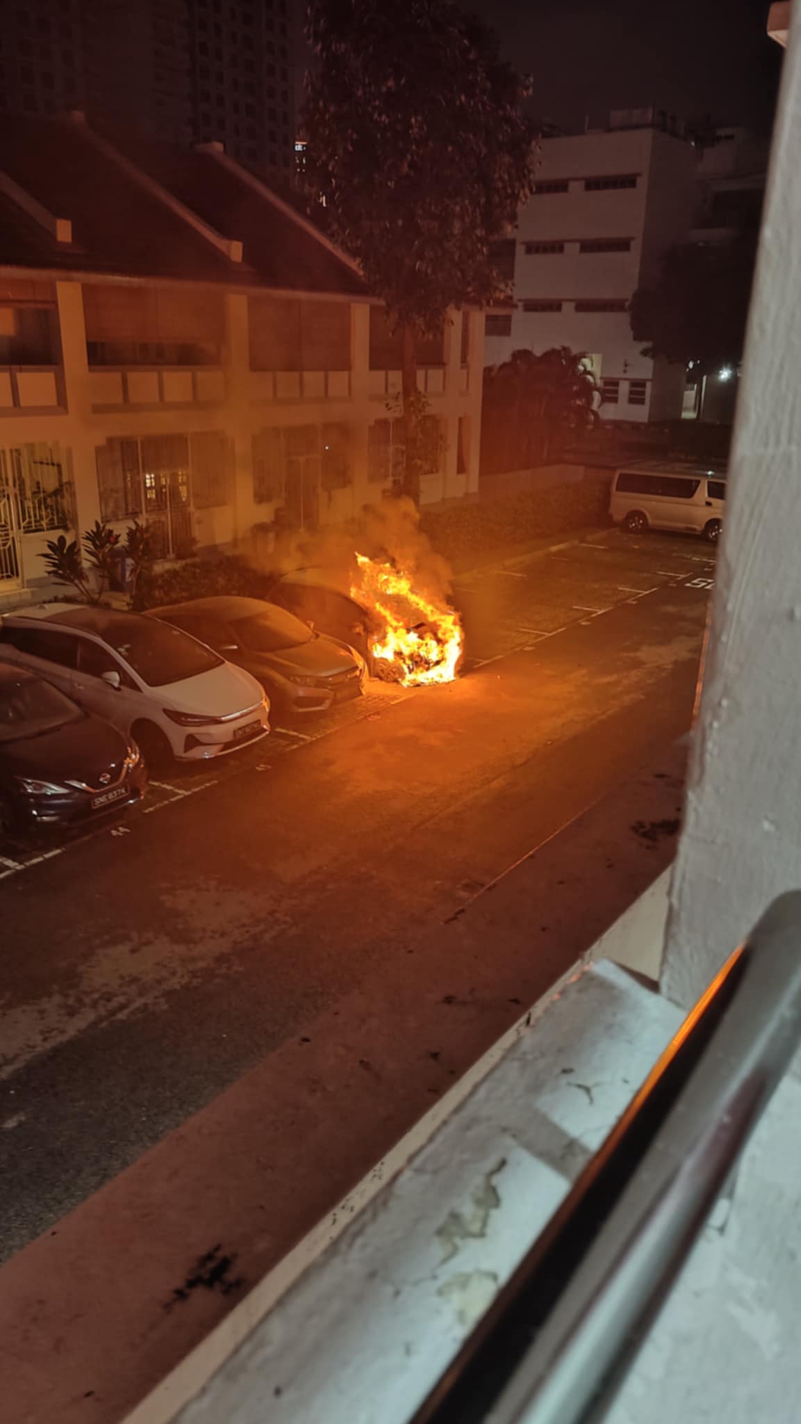 Also read: Car destroyed by fire along road in Tampines, SCDF firefighters extinguish it