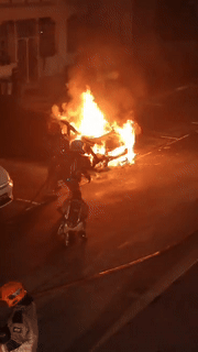 Man ignores police & SCDF officers to move car away from burning vehicle in Boon Keng