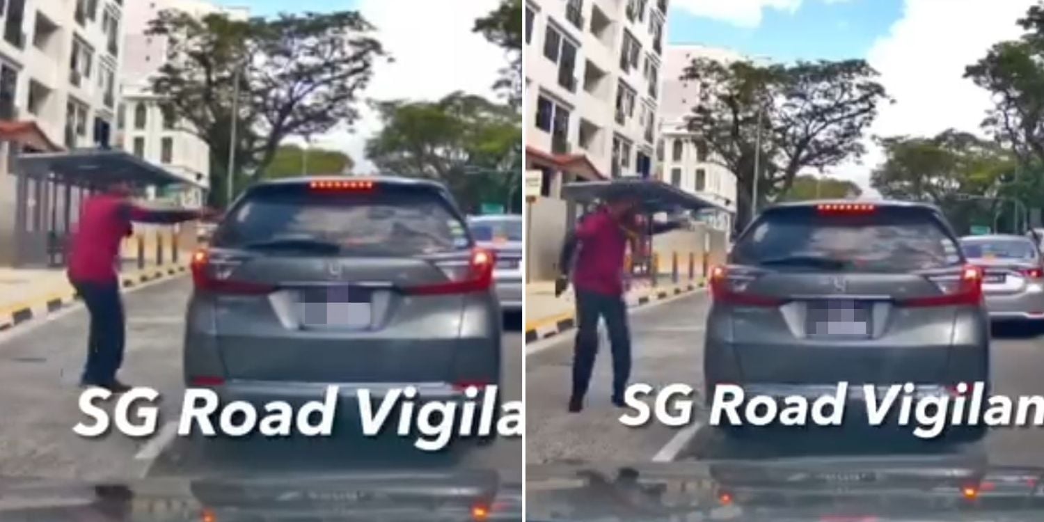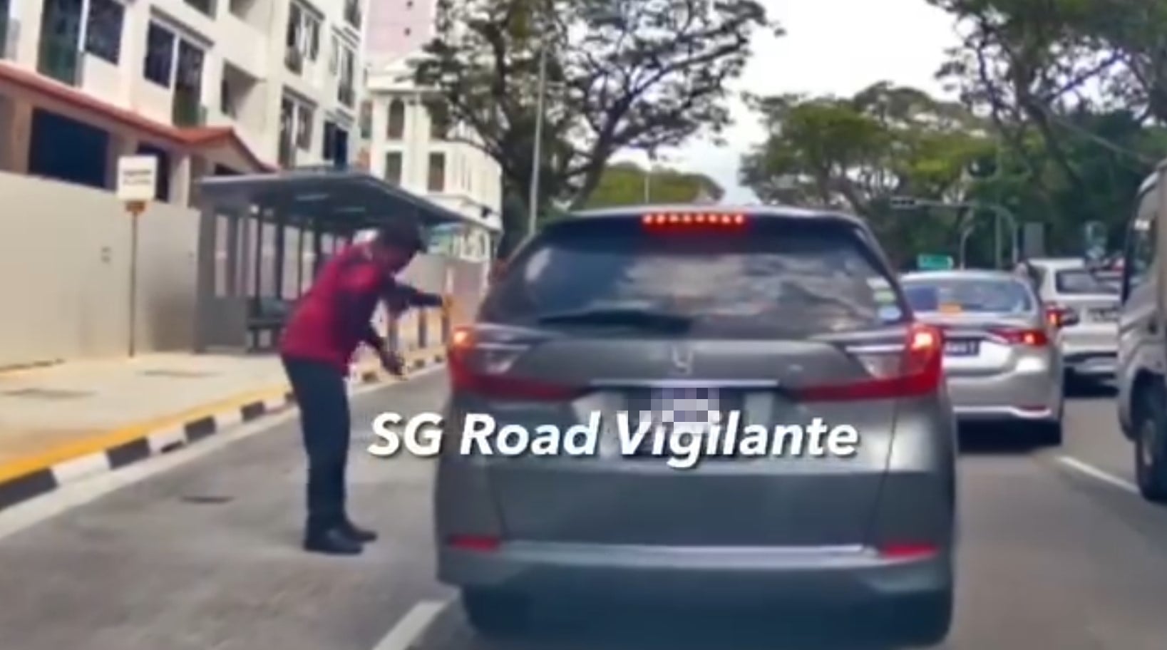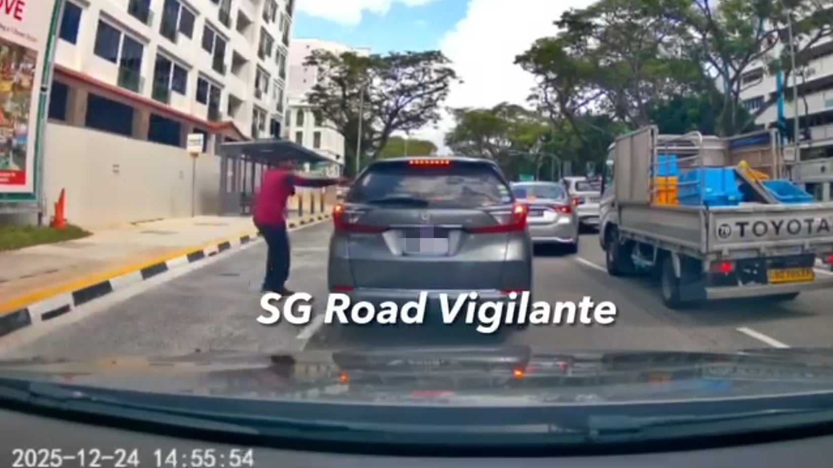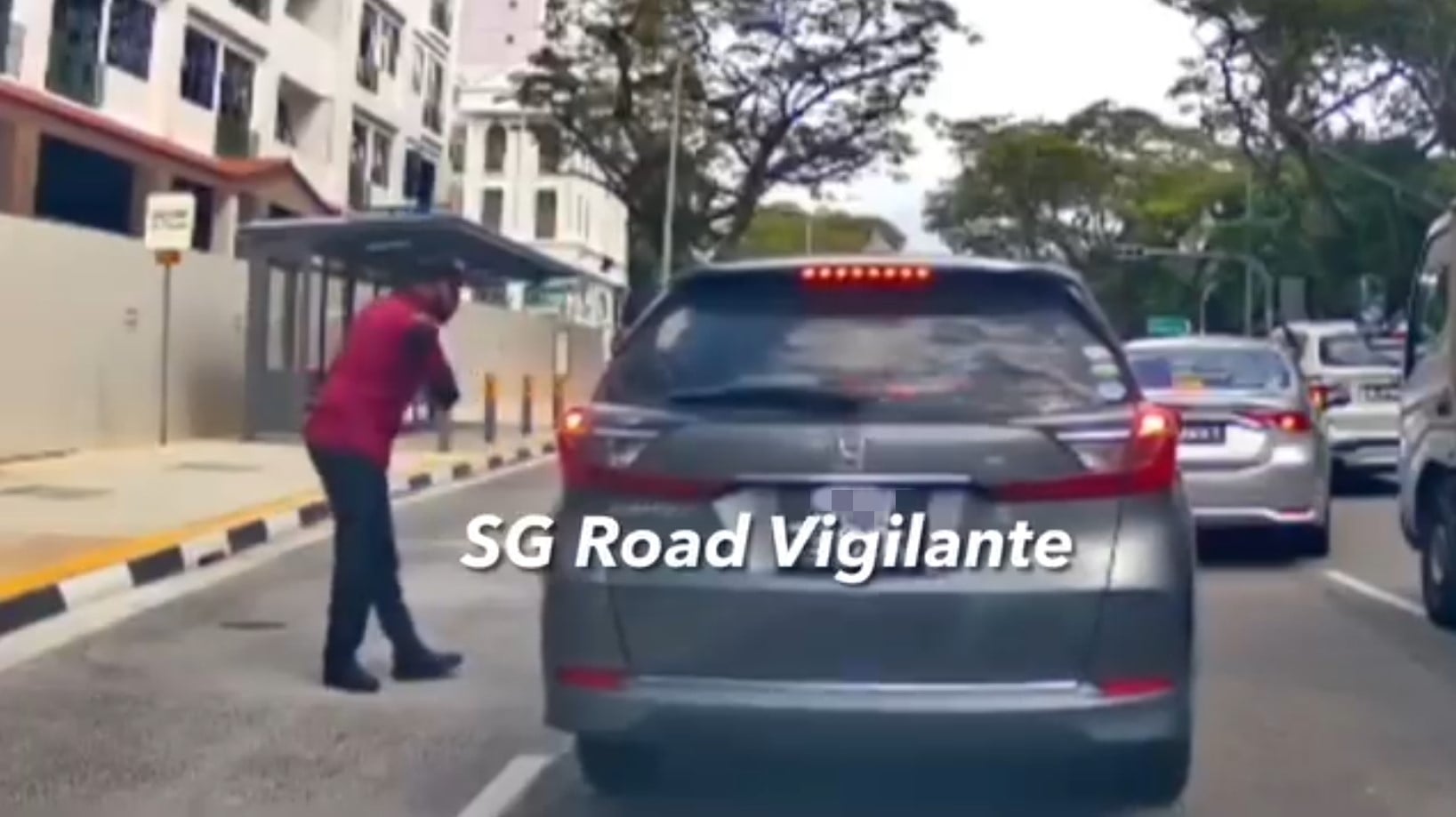 In footage posted by SG Road Vigilante on Facebook, the bus captain is seen gesturing irritatedly at the car driver.