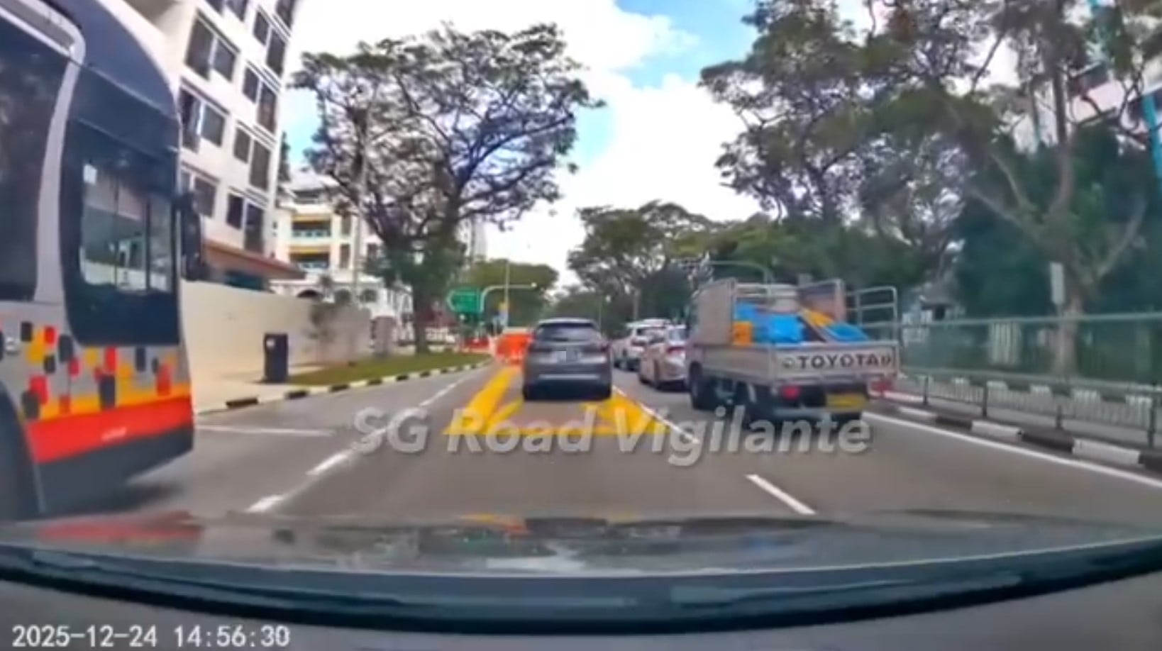 The clip, which had a time stamp of 2.55pm on 24 Dec, was recorded by a motorist who was between the bus and the grey Honda Shuttle.