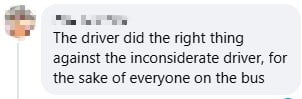 Many of the netizens who commented on the video sided with the bus captain, saying the car driver was inconsiderate as bus captains are on a schedule and bus passengers were waiting to alight.