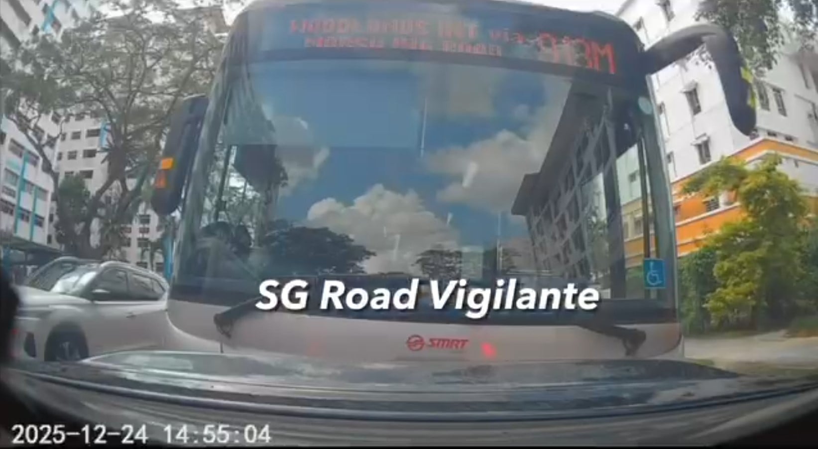 It showed SMRT bus service 913M stuck behind the camcar, unable to filter into a bus bay along Woodlands Avenue 1.