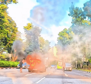 However, the fire continued burning, albeit smaller, and the bus captain is seen running back to the bus before the video ended after 1 minute and 21 seconds.