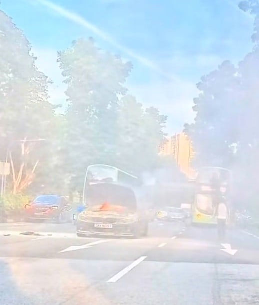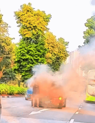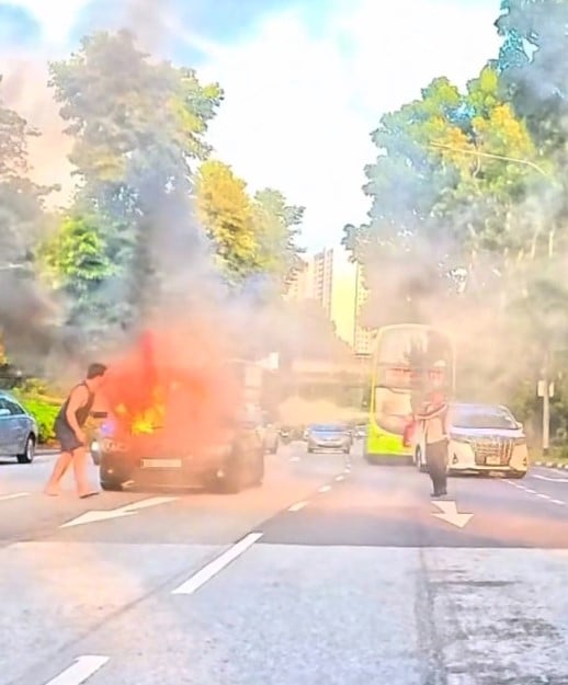 2 SBS Transit bus captains work together to contain car fire along Circuit Road until SCDF arrives