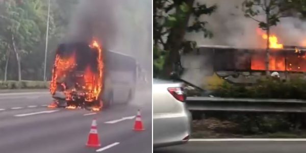 Private bus catches fire & causes congestion along BKE, 2nd vehicle fire in 1 day