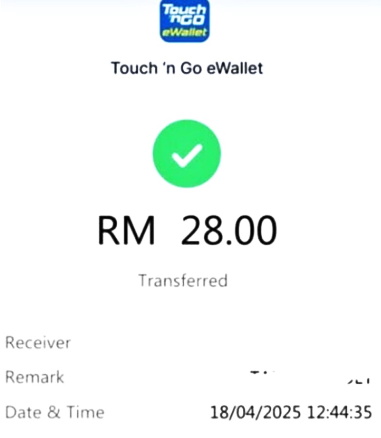 For this, Mr Chan paid RM28, he said, and he also posted a screenshot of the payment made from his Touch ‘n Go eWallet.