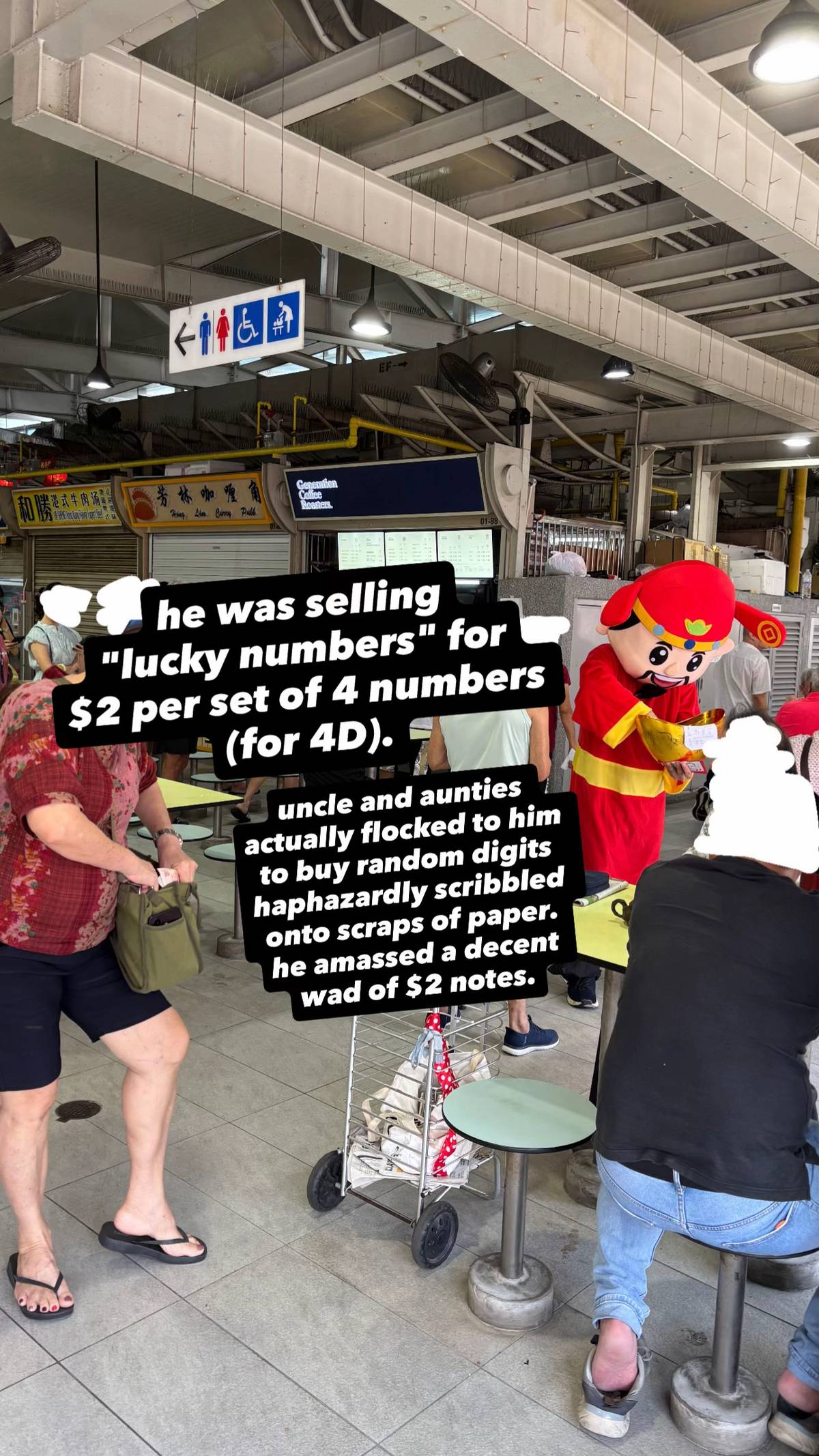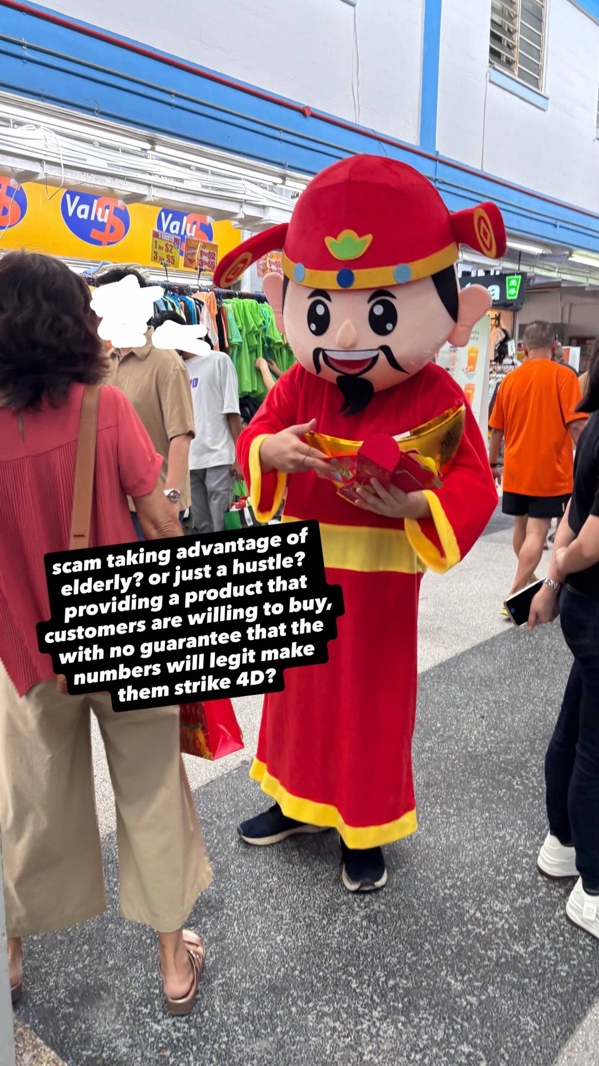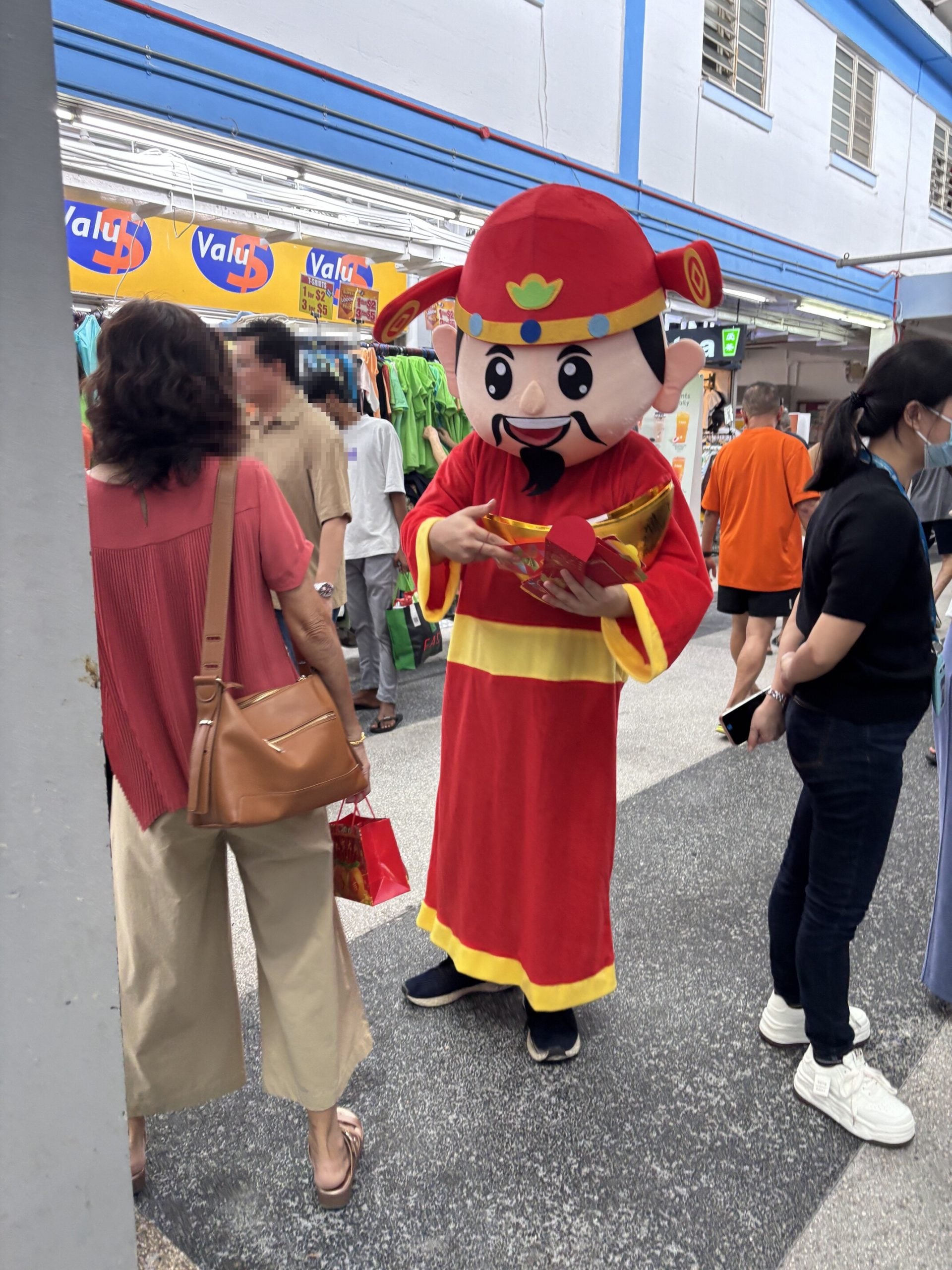 A 30-year-old media professional has raised concerns after spotting a Cai Shen Ye, or the Chinese God of Wealth, mascot selling “lucky numbers” for S$2 at a hawker centre in Boon Keng on the third day of Chinese New Year.