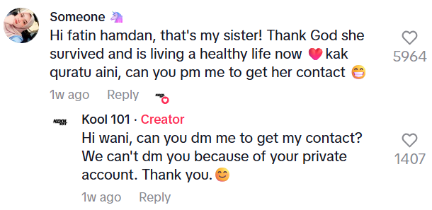 Meanwhile, one user, who claims to be Ms Siti’s sister, commented on the viral TikTok video, saying her sister had indeed survived.
