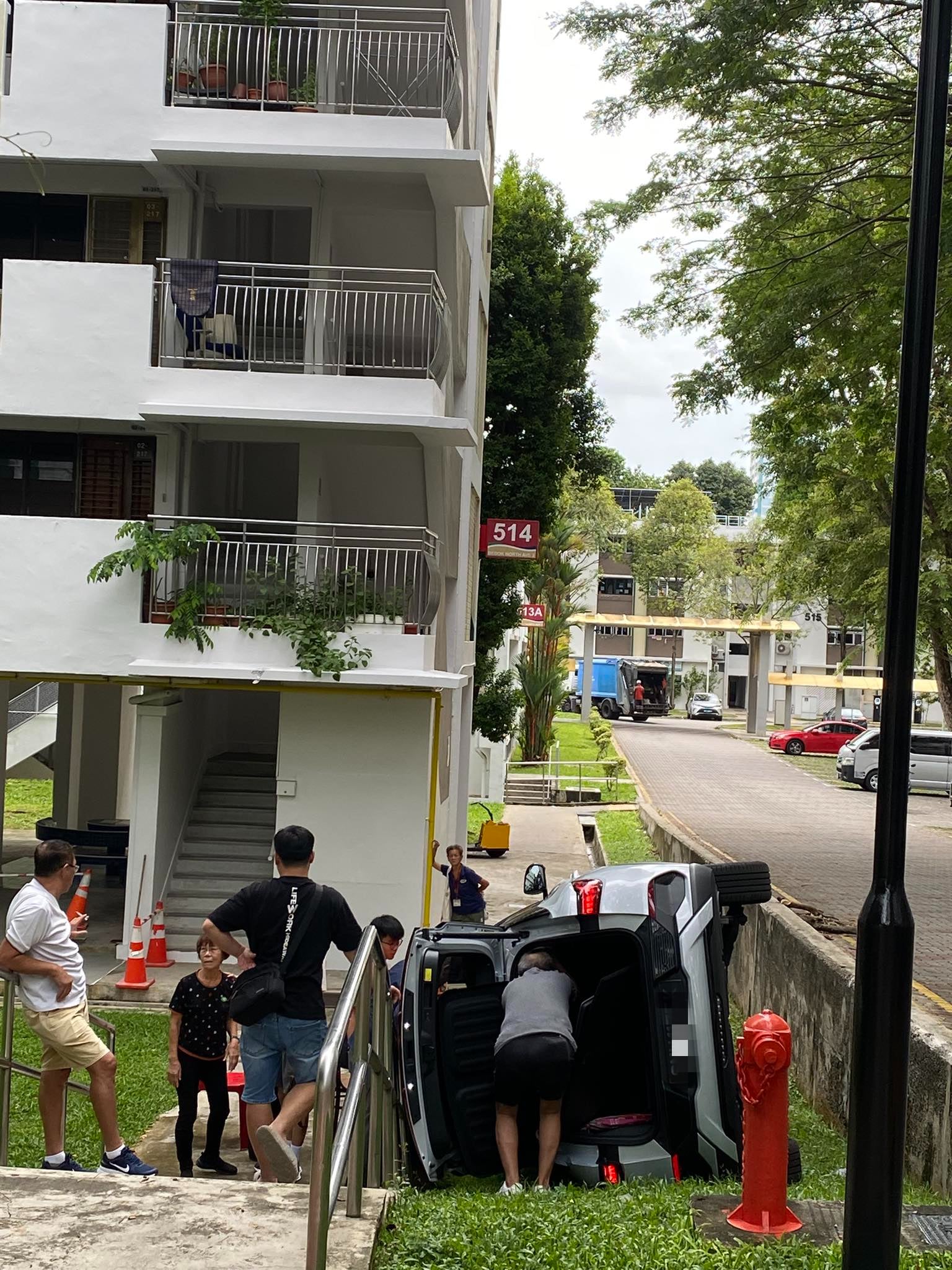 A photo posted on Threads showed the car lying on its left side next to Block 514 Bedok North Avenue 2.