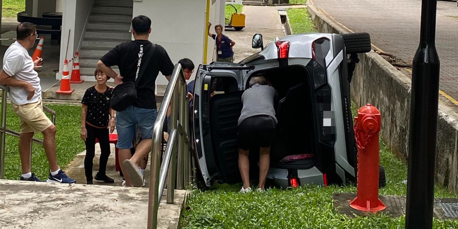 A photo posted on Threads showed the car lying on its left side next to Block 514 Bedok North Avenue 2.