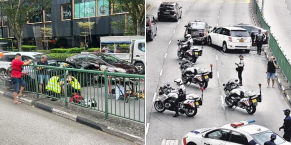 Car crashes through traffic guardrails in Balestier, results in 4-car pile-up & injures 2 people