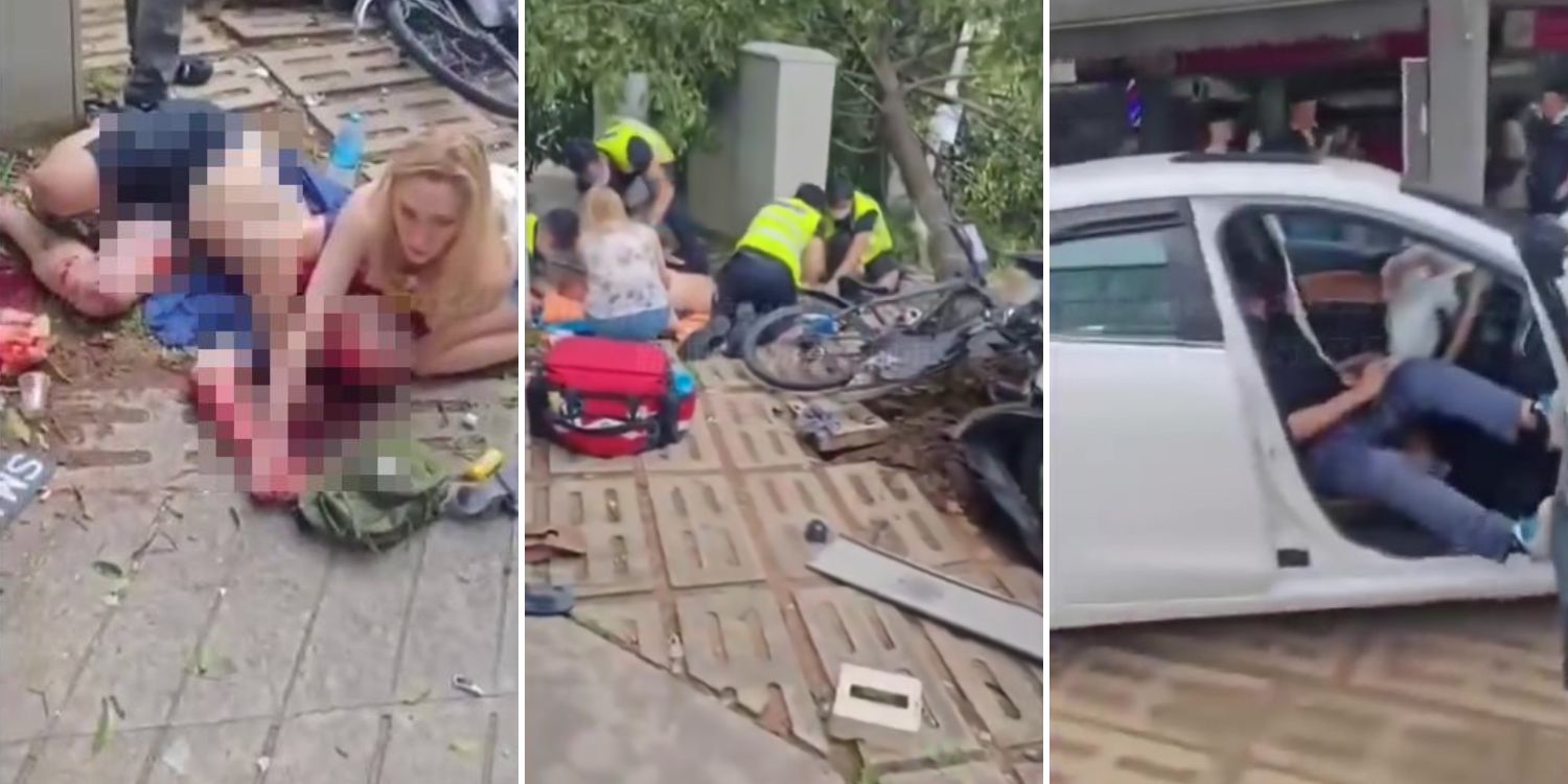 Halfway through the video, a man was seen lying motionless on the ground, bleeding profusely, as SCDF paramedics worked to stabilize him. Bystanders formed a crowd around the scene, with some stepping in to offer help.