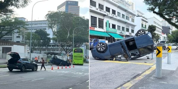 Car flips over along Outram Road, 61-year-old driver sent to the hospital