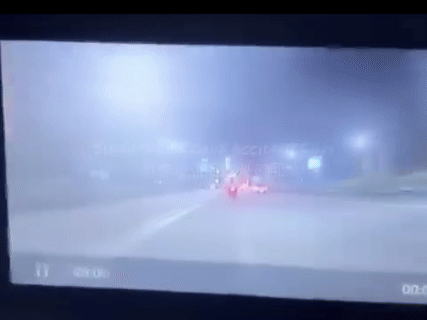 In the process, it wiped out a motorcycle that was travelling in the far-left lane.