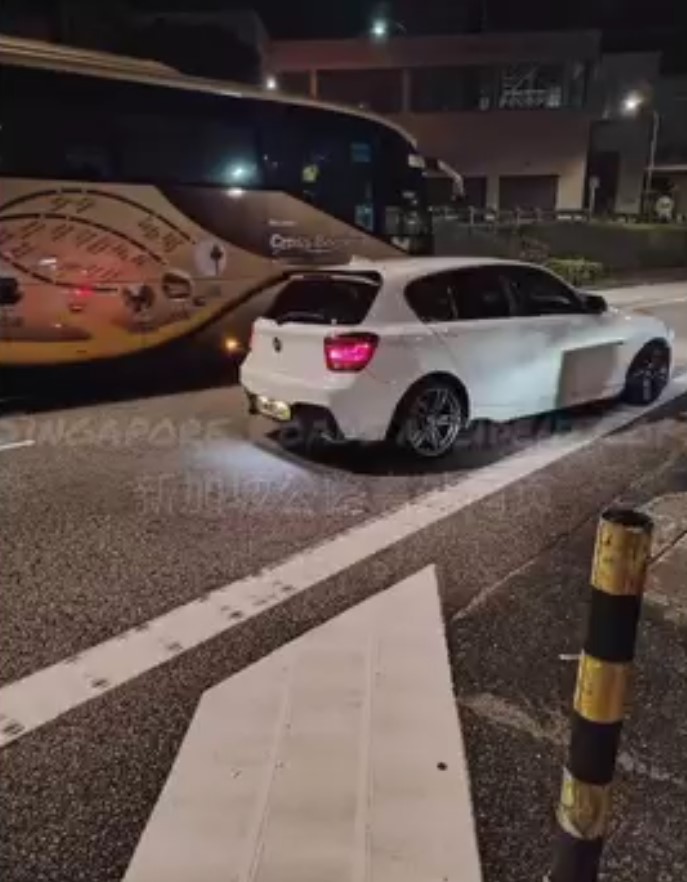 Footage of the accident posted by Singapore roads accident.com on Facebook showed the white car suddenly changing lanes from the far-right to the slip road on the left.