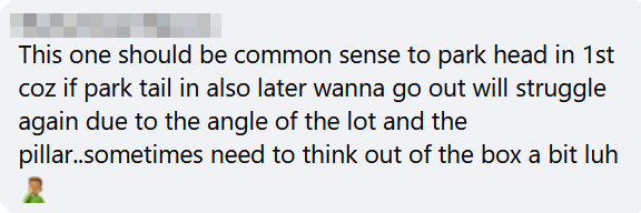 One netizen said it should be “common sense” to drive into the lot front-first, pointing out that the driver would face the same difficulty leaving the lot and making the sharp turn around the pillar.