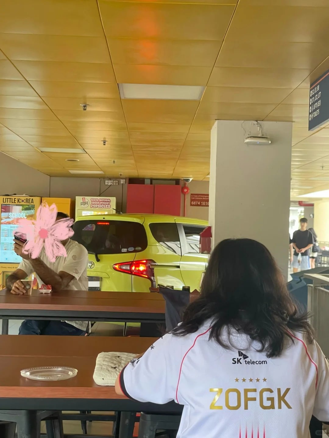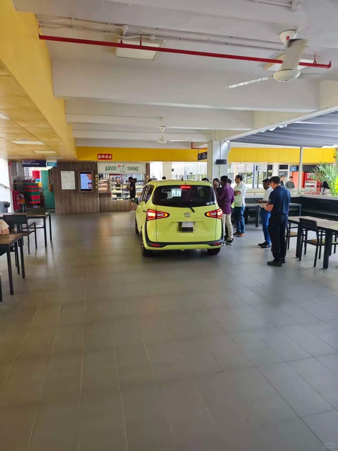 In another photo, the car had apparently stopped in the middle of the canteen, with a group of people appearing to engage its driver.