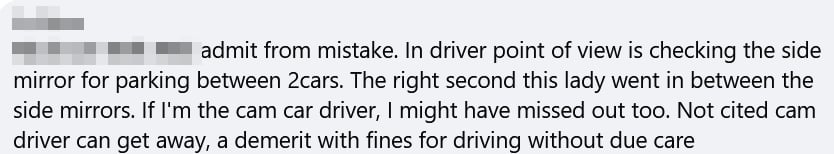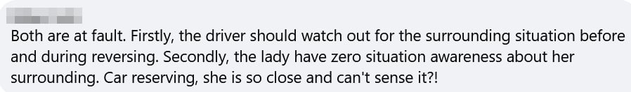 One noted that the driver should have been more watchful of his surroundings when reversing his car, while the pedestrian should have noticed the car reversing so close by.