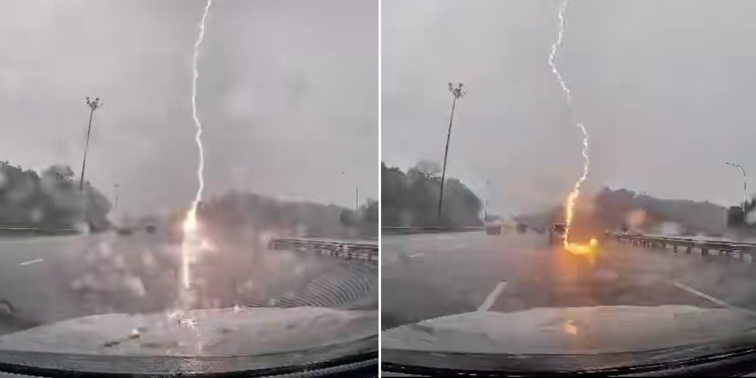 Now, imagine a driver’s fright when they saw a car in front of them on a Malaysia highway struck by lightning amid heavy rain.
