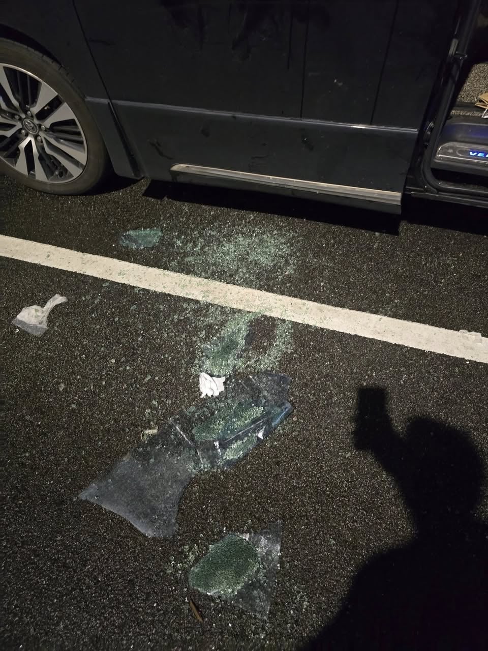 He shared images of the Toyota Vellfire, which had its passenger-side window smashed open.