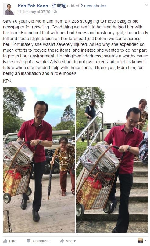Ms Tan updated her post to respond to them, saying that “it’s ok” and she knew that people will claim that her picking litter is very wayang.