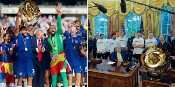5 months ago Chelsea FC hoists replica trophy after Club World Cup victory, original one in Trump’s officeÂ