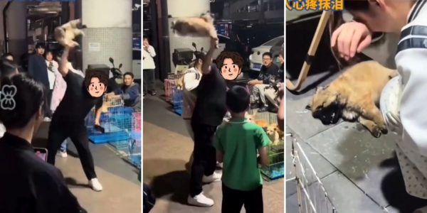 8 months ago Man in China throws puppy on ground after night market pet vendor refused to give him refund