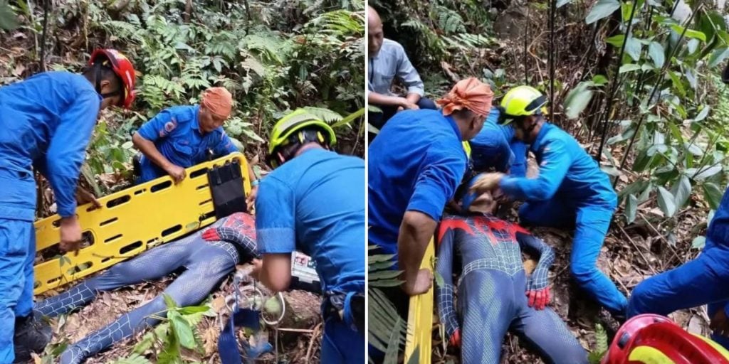 Man in Spider-Man costume rescued after falling 20 metres while climbing hill in M’sia He suffered injuries to his legs from the fall. 2 minutes ago