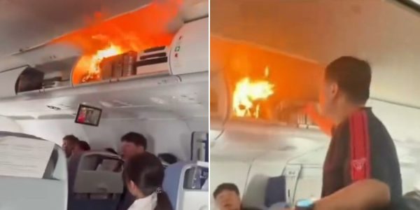 Lithium battery catches fire in overhead compartment on Air China flight, plane makes emergency landing