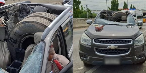 3 months ago Stray truck wheel lands on car in Thailand, driver conveyed to hospital in critical condition