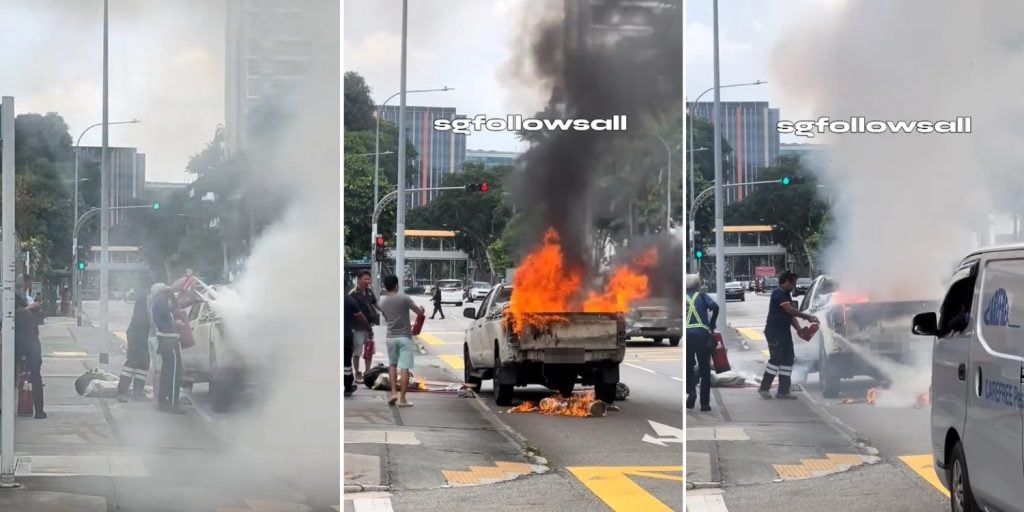 Pickup truck catches fire in Tanjong Katong, passers-by rush over with fire extinguishers Nobody was injured in the fire. 52 minutes ago